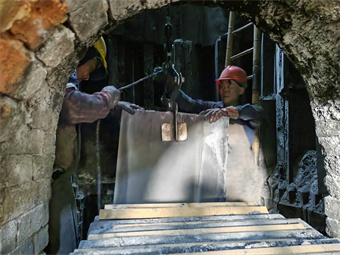 青年党员和团员们站在一旁,眼中闪烁着期待的光芒,脸上洋溢着自豪和激动。金砖缓缓从窑中取出,那沉甸甸的重量仿佛承载着千年的历史和文化的厚重。它色泽深邃,每一道纹路都仿佛在诉说着古老的故事。青年们围上前来,仔细端详着金砖,感受着它散发出的独特魅力。