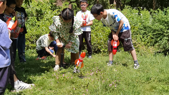 活动现场,科普志愿者首先向孩子们介绍了中国航天事业的发展历程,讲述中国航天的事迹和成就,共同探索航天动力的秘密。并向参加活动的青少年介绍火箭升空小助手—整齐的尾翼、大量的燃料、尖尖的整流罩。接着科普志愿者讲解了水火箭的制作过程、发射原理以及注意事项。孩子们利用手中的塑料瓶制作水火箭,用胶带粘连瓶身,组装机翼、火箭头,当了一回“火箭”设计师。有的还装上了多彩的尾翼,一个个独具创意的水火箭很快诞生。最后,青少年们带着自己的作品前往户外草地上进行发射。一枚枚水火箭喷射出水花腾空而起,直冲云霄,在空中划出一道道优美的弧线,伴随着一阵阵惊叹声和欢呼声。偶有水火箭出现偏离目标或翻转飞舞等充满趣味的小插曲,引得大家捧腹大笑。志愿者记录着每个水火箭的发射高度,评选出最终优胜者。