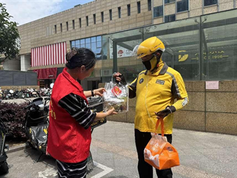 社区行动支部党员、巾帼志愿者、海棠先锋依托元气加油站,在美好荟商圈、活力大厦设置移动摊位,将一份份精心包装的暖“新”大礼包送给辖区外卖员、快递员等新业态新就业群体。礼包内包含粽子、绿豆汤以及手机防水袋等物品,在传递节日祝福、送上夏日清凉的同时,也为他们的必备工具——手机保驾护航,感谢他们为城市发展繁荣、市民生活舒适作出的贡献,提醒他们文明骑行、注意安全。“真是一份实用暖心的包裹,谢谢你们。”前来久遇里商场取餐的外卖员小李收下礼包后连声道谢。此次活动共送出礼包20余份。