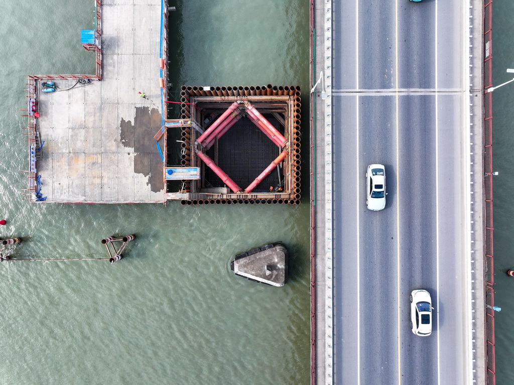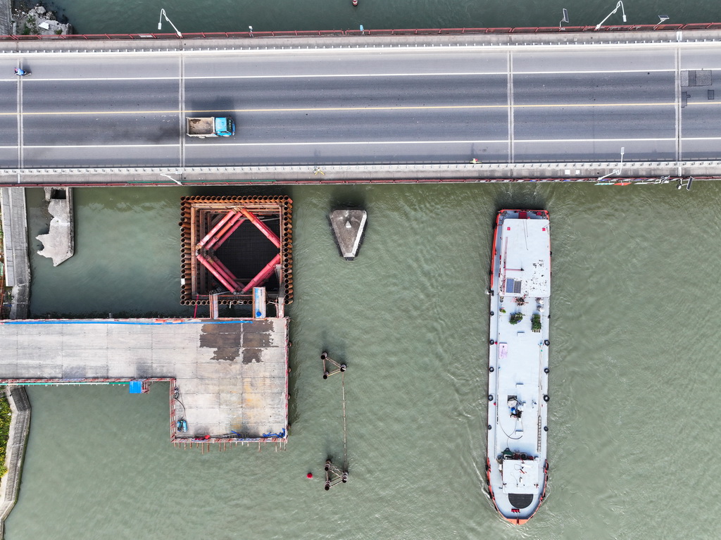 目前,由中铁建城通公司承建的长湖申线(江苏段)航道整治工程东段项目施工有序推进,新建平望大桥左幅主墩围堰封底完成过半。据介绍,项目整体建成后,对构建长三角高等级航道网、完善区域综合交通运输体系等具有重要意义。新华社记者 季春鹏 摄