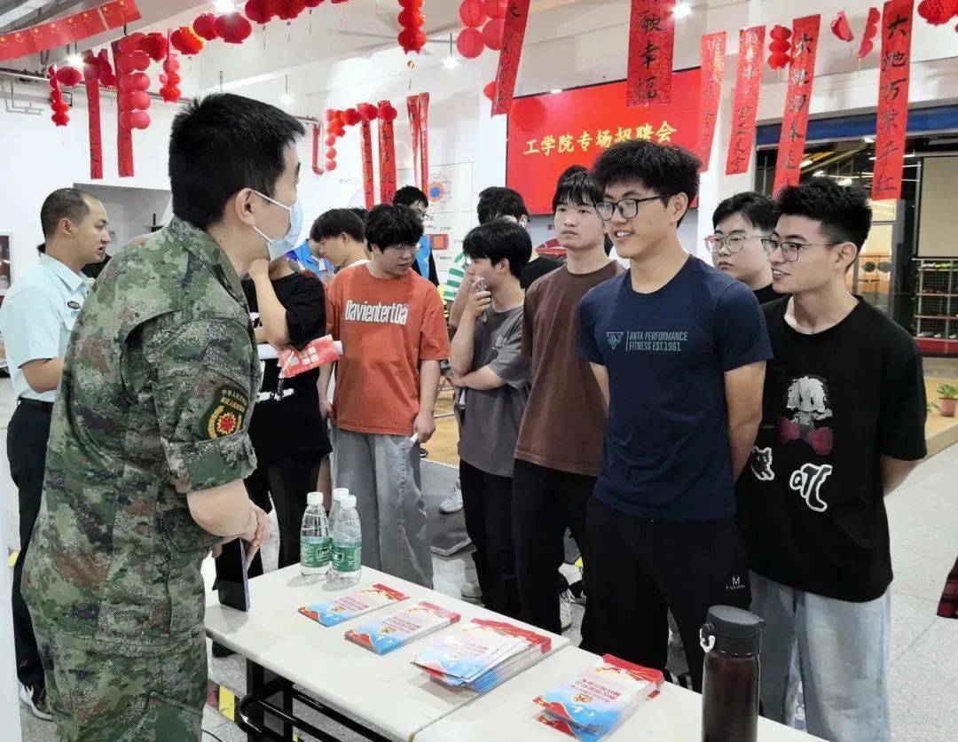 “我现在近视300多度,影响报名参军吗?”“女生参军有哪些条件要求呢?”……活动负责人针对学生们关心的体检标准、应征流程、学籍保留、优抚待遇、发展前途等问题一一进行了解答,并从大学生应征入伍的“政治账”“荣誉账”“素质账”“成才账”“前途账”五个角度出发,为大家生动展现了参军报国、建功军营的美好蓝图,鼓励青年学子积极响应祖国号召,携笔从戎,投入强军报国的伟业中,为实现强国梦、强军梦贡献力量。