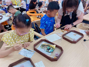 在孩子和家长的共同努力下,一幅幅独具特色的、流光溢彩的烧箔画展现在眼前,每幅画都呈现出独特的美感,每个人的脸上都洋溢着笑容和喜悦,现场充满了欢声笑语,孩子们对传统文化的兴趣和热爱也油然而生。