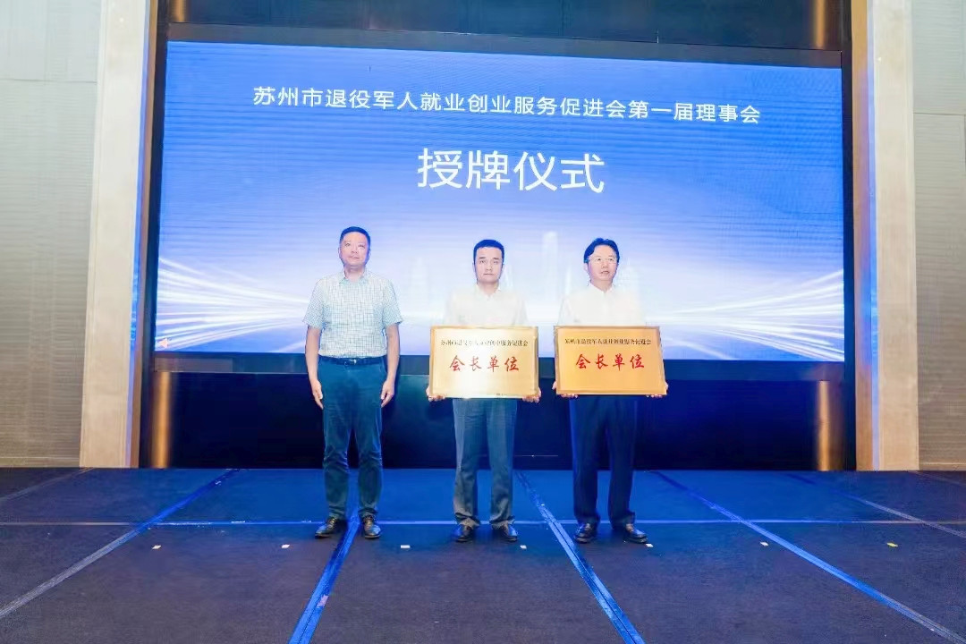 会议听取了促进会筹备情况,宣读了苏州市退役军人事务局《关于同意成立苏州市退役军人就业创业服务促进会的批复》,选举产生了名誉会长、会长、副会长、秘书长,并为会长、副会长、理事单位授牌,向会长、秘书长和监事颁发聘书。亨通集团董事长崔根良、通鼎集团有限公司董事长沈小平当选名誉会长,原苏州市退役军人事务局三级调研员薛锋当选会长。