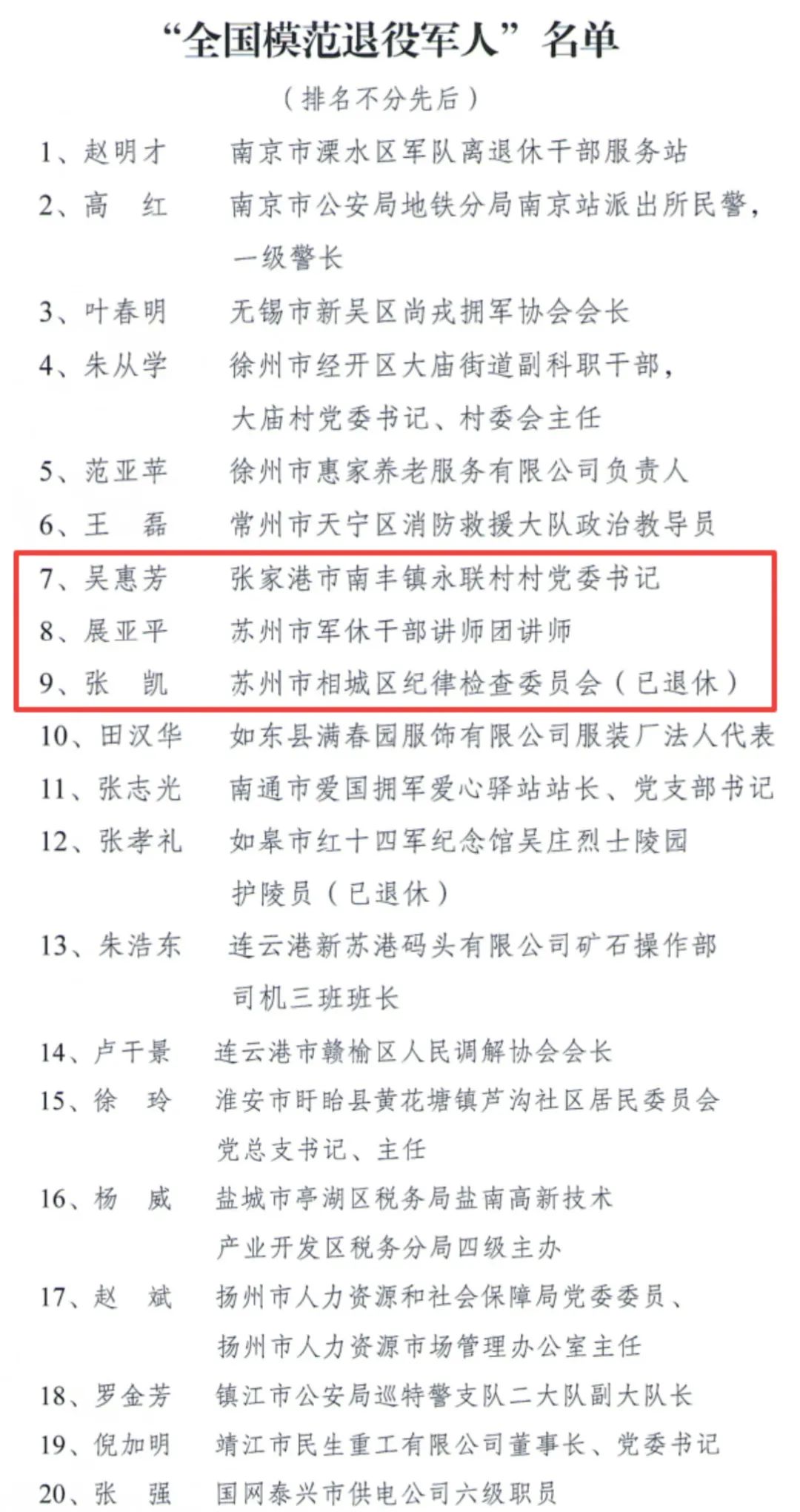 其中,苏州共有3人上榜,获评“全国模范退役军人”荣誉称号!
