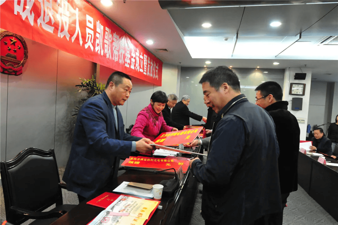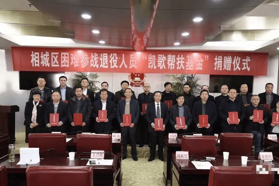 2013年底,他发起成立“困难参战退役人员凯歌帮扶基金”,个人率先捐出17万元,其中7万元用于资助困难老兵子女上学,10万元作为基金的启动资金。他还将自己每年的残疾抚恤金捐给基金,同时发动全区退伍军人、企业家和爱心人士捐款,目前基金捐赠额已达到106.7万元。