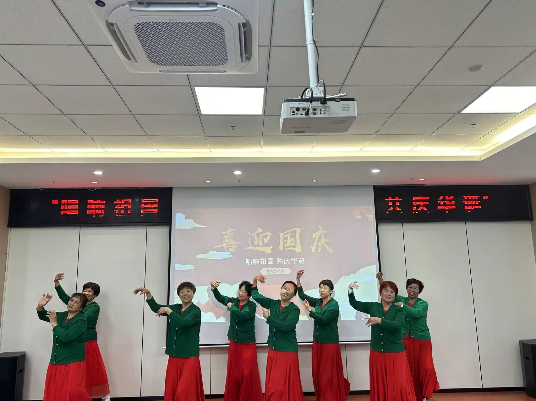 演出当天,社区中心装饰一新,营造出了浓厚的节日氛围。开场辖区合唱团阿姨们便是一场震撼人心的大合唱《五星红旗》,老年朋友们用饱满的热情和嘹亮的歌声表达了对祖国的深情祝福。随后的小合唱《红太阳照边疆》更是展现了他们对美好生活的向往和赞美。