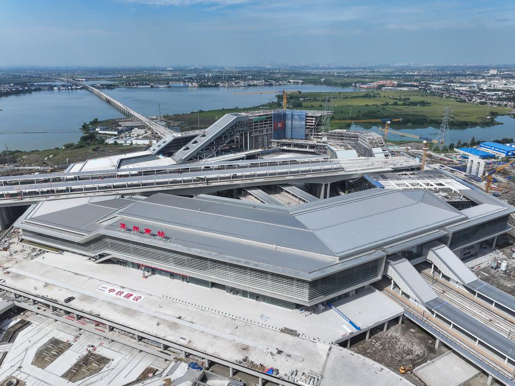 据悉,苏州南站是沪苏湖高铁与通苏嘉甬高铁的“十”字交汇共用枢纽站。站房建筑面积约4万平方米,站台总规模为4台12线。目前,苏州南站整体工程进入装饰装修收尾阶段,建成后将成为一座集高铁、城际铁路、城市地铁等于一体的综合交通枢纽车站,对推动长三角一体化高质量发展具有重要意义。