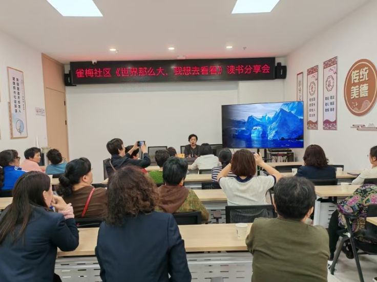 为深化全民阅读活动,更好地满足广大居民群众的阅读需求,10月16日下午,吴中区总工会送课进雀梅社区,在雀梅社区新时代文明实践站多功能活动室开展《世界那么大,我想去看看》读书分享会,社区组织近30名社区居民参加此次活动。