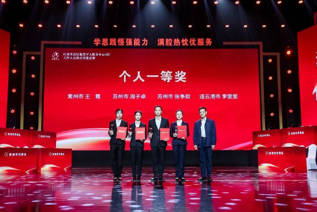 10月15日至16日,由省退役军人事务厅主办的2024年度江苏省基层退役军人服务中心(站)工作人员职业技能竞赛在常州隆重举行,来自各设区市的13支代表队共计52名选手参赛。经过激烈角逐,苏州市代表队发挥出色,分别荣获 个人一等奖2名 。同时,荣获个人二等奖1名 ,个人优秀奖1名和团队三等奖 。获奖数量位居全省前列。