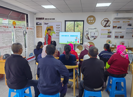 江阿姨是北赵潭“领甪先锋”驿站的海棠先锋,见证着驿站对村民生活的改变。“村民们买完菜、吃过饭都喜欢来这里坐一会,拉拉家常,邻里关系也越聊越热络。大家还自发在这里开办了‘二胡兴趣班’,以乐会友,加固了村民之间的感情”。
