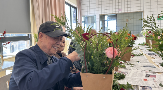 活动结束,大家开心地展示自己的插花作品,并拍照留念。此次活动的举办,让社区居民从动手中找到乐趣,从作品中找到成就感,从交流互动中拉近距离。同时也引导大家在日常生活中接纳、尊重、帮助老年人,营造敬老爱老助老的社区氛围。