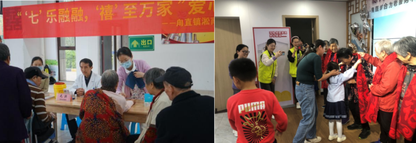 淞南村新时代文明实践站、保圣社区新时代文明实践站分别开展邻里服务活动。志愿者为老人理发,免费提供血压血糖测量、疾病初筛、健康咨询、用药指导等便民服务,提升村民的生活幸福感与归属感。厨艺比拼、趣味游戏等活动吸引了众多居民参与,有效拉近邻里距离,增强社区凝聚力,推动社区和谐共融。