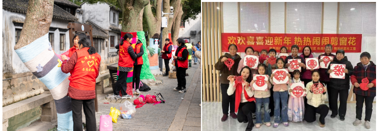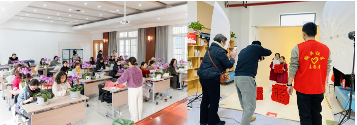 蝴蝶兰盆景制作、新年全家福拍摄、非遗年画制作、冰糖葫芦DIY、包团子、糖画制作、剪窗花、寻古镇年味、给“大树”穿衣……各类文明实践特色活动吸引了广大居民参与。活动现场热闹非凡,孩子们笑着闹着,大人们唠家常、送祝福,大家共同沉浸在这充满年味与温情的美好时光里,邻里间的感情愈发深厚。