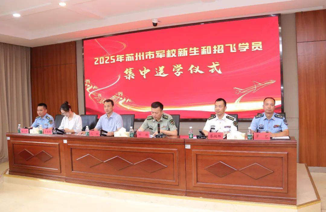 送学活动上,沈斌首先向2025年军校新生和招飞学员表示了热烈祝贺。他说,军校新生和招飞学员是苏州的优秀学子,是地方的有志青年,具备扎实的文化基础、良好的素质修养和坚定的理想信念。学员们积极响应祖国的召唤,毅然决然地选择投身火热军营,用青春和热血践行保家卫国的铮铮誓言,这份勇气和担当令人敬佩。沈斌对军校学员们提出了殷切期望,希望他们心怀家国、心怀他人、心怀天下,做到“三个好好”: 一是好好学习, 不仅要学好文化课,还要学好军事课等各类课程,不断提升自己的知识水平和综合素质; 二是好好训练, 在训练中磨砺军事技能、增强体能、锤炼意志,努力成为一名素质过硬的军人; 三是好好生活, 做到规矩生活、阳光生活、安全生活,以积极向上的态度面对军校生活的每一天。最后,他鼓励学员们再接再厉,用忠诚、奋斗、担当书写属于自己的精彩人生篇章。