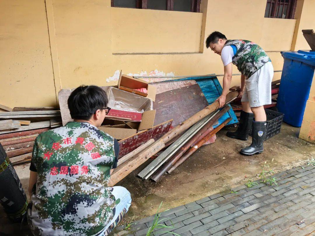 太仓市退役军人志愿者抗台期间清理路面杂物保障村民出行安全