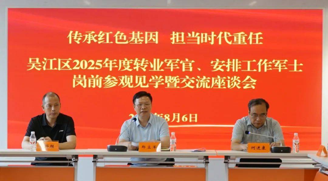 传承是最好的致敬,奋斗是最美的姿态。为助力退役军官、军士更好地融入地方、开启新征程,8月6日,吴江区退役军人事务局组织开展“传承红色基因 担当时代重任——2025年度区转业军官、安排工作军士岗前参观见学暨交流座谈会”,全区待安置退役军官、军士和部分退役军人代表参加,在沉浸式体验与互动交流中积蓄转型力量,为即将开启新的工作岗位蓄力赋能。