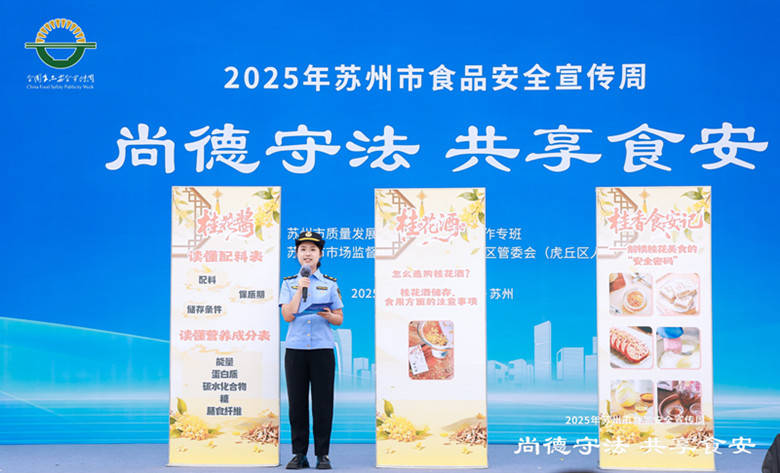 秋意渐浓,丹桂飘香。为全面展示食品领域诚信体系建设成效,推动食品安全全民共治共享,9月29日,苏州市正式启动2025年食品安全宣传周活动。本次活动以“尚德守法 共享食安”为主题,旨在从文化赋能、科技支撑、数据引领、公益践行四大维度,为全城市民献上一场兼具文化底蕴与科技温度,又贴近百姓生活的食安新体验。