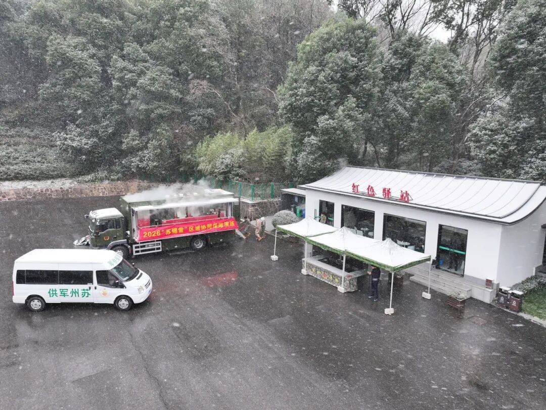 1月20日,苏州冬雪纷飞,寒风裹挟着雪花为演练现场增添了浓厚氛围。苏州、无锡、常州三市军供站联合开展的2026区域协同保障首训在风雪中如期举行。参训人员顶风冒雪、协同作战,以实战标准圆满完成跨区域军供保障演练,在恶劣环境中锤炼本领、凝聚合力,取得扎实成效。