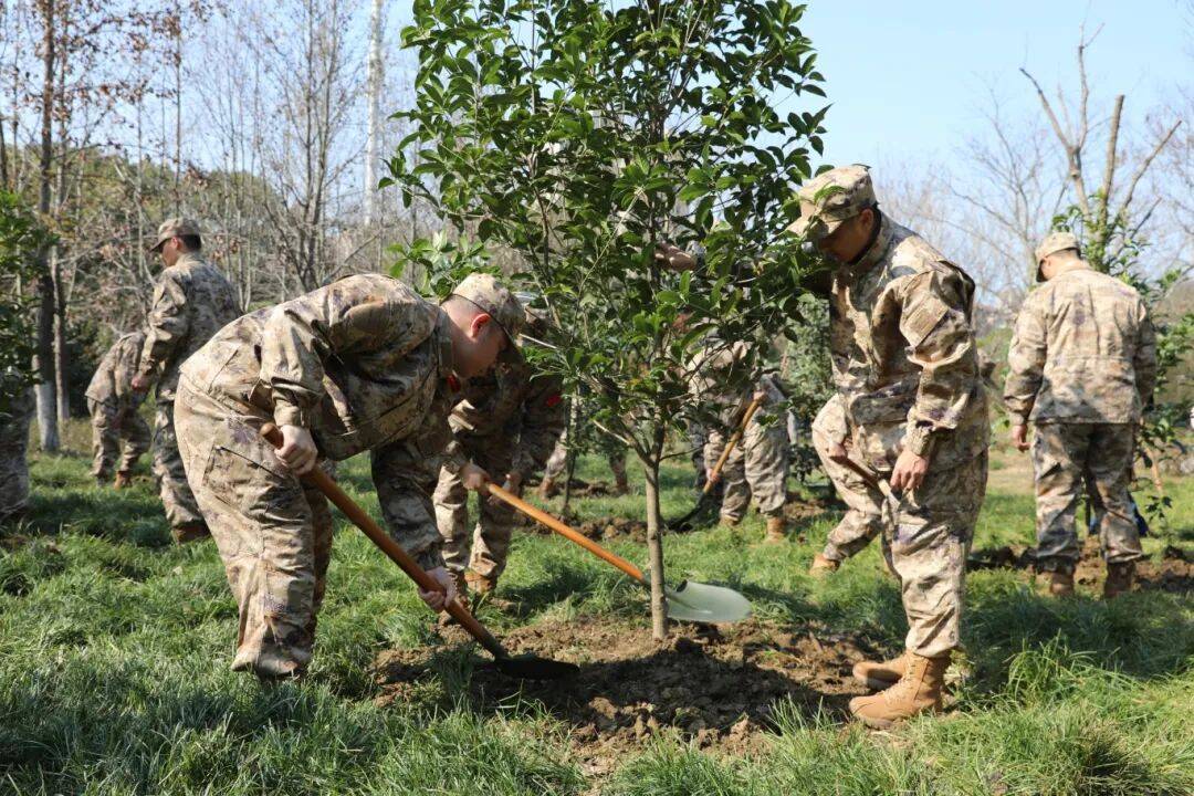 3月12日,吴江区退役军人事务局、区人武部、松陵街道的军地代表、退役军人与预定新兵在吴江双拥主题公园共同参加义务植树活动。大家分工协作,挥锹铲土,依次完成整地、种植、围堰浇水等工序。“扶苗要正,填土要实。”一位老兵边示范边讲解,预定新兵围拢学习,认真操作。不一会,一株株桂花树在双拥林“安家落户”,象征军民鱼水情谊绵长。活动不仅为双拥主题公园增添了一抹新绿,更在预定新兵即将入伍之际,以劳动实践的方式完成了一次特殊的役前教育。植树结束后,预定新兵还开展环境清理,参观双拥长廊、英模步道,并聆听红色宣讲,进一步坚定了矢志强军的决心。