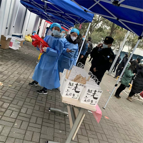 疫情发生后,朱新年点心店广泛发动各家分店的力量,由各家分店就近为所在街道、附近的社区和核酸检测点,提供汤包、馄饨、汤圆、面等餐食。朱新年点心店的负责人介绍说:“最近几天,光是汤圆,就已经送出了1700多个。汤圆是我们家的明星产品,一直深受食客好评,志愿者们尝了之后也觉得很好吃,看到他们吃到热气腾腾的点心,我们也很开心。如果后续有其他街道有需要,我们还会继续动员其他地方的加盟店,共同为防疫出一份绵薄之力。志愿者们如果觉得点心吃腻了,我们还可以提供定制化的盒饭服务。总之,想吃啥,你们说,我们做!”(作者:顾萱)