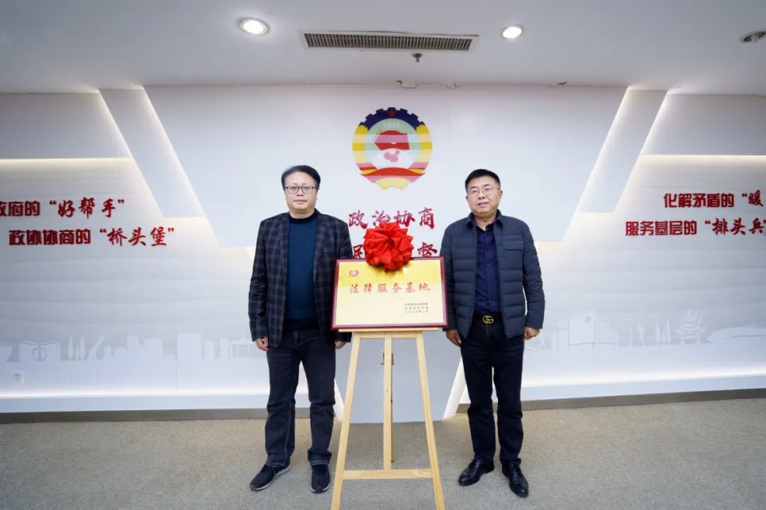 民革相城区基层委委员、相城区法院审判委员会委员刘福龙,元和街道综合服务中心主任、政协工委副主任吴曙东为民革法律服务基地揭牌。