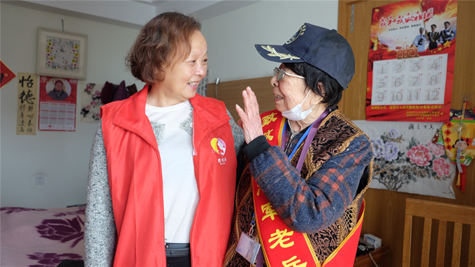 在吴江区滨湖乐龄公寓,91岁的汝织文奶奶热情接待慰问组,她热情地泡茶,送上小糕点,娓娓讲述自己颇有传奇的经历。