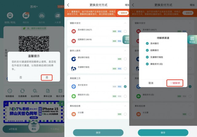 使用苏e行的小伙伴们,记得尽快解绑并重新签约哦。