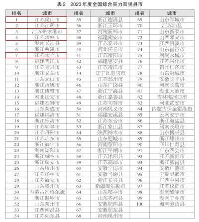 张家港位居第三位,常熟位居第四位,太仓位居第七位。