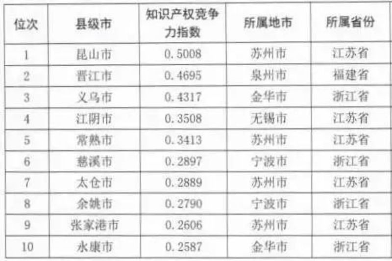 近日,在第十届三江知识产权论坛上,《中国县域知识产权竞争力百强报告(2022年)》发布,苏州四个县级市成功霸榜。