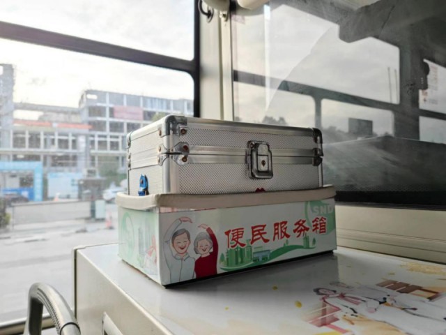 在“硬设施”方面,“适老化”线路全部配置新能源车,一人一座、低踏板,配备上下车无障碍翻板,方便轮椅车通行,车厢正对后门的区域还设置轮椅放置区,有专门的扶手和轮椅固定装置,让出行更安全、更方便;整洁的内饰、软垫的座椅和宽敞明亮的车厢,加上通风散热的车内环境,让老年乘客享受更好的乘车体验。更贴心的是,在399路上还配备便民服务箱,放置了口罩、纱布、创可贴、风油精等医用用品,以备不时之需。