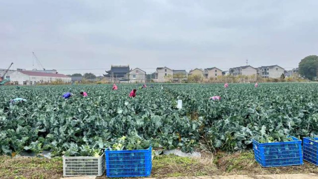 位于常熟市梅李镇的聚沙绿阳现代农业科技有限公司所属蔬菜基地,现种植蔬菜约300亩,当季主要蔬菜品种为芹菜、蓬蒿、西兰花、青菜、包菜等。除了配送本地学校、企事业单位外,公司还为苏州、无锡等地的商超供货,目前每天蔬菜上市量稳定在6~8吨。