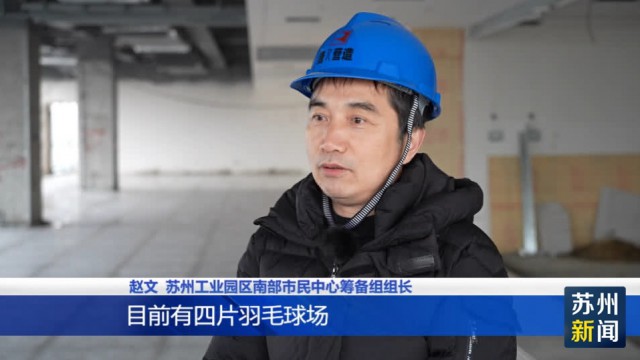 苏州工业园区南部市民中心筹备组组长赵文表示,未来,一些小型赛事和体育活动会放在这里,一楼还有半片篮球场地,二楼有个综合球馆,目前有四片羽毛球场,如果有需求还可以举行篮球比赛。