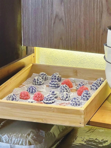 店员正在制作绣球花冰淇淋。 记者 刘达摄
