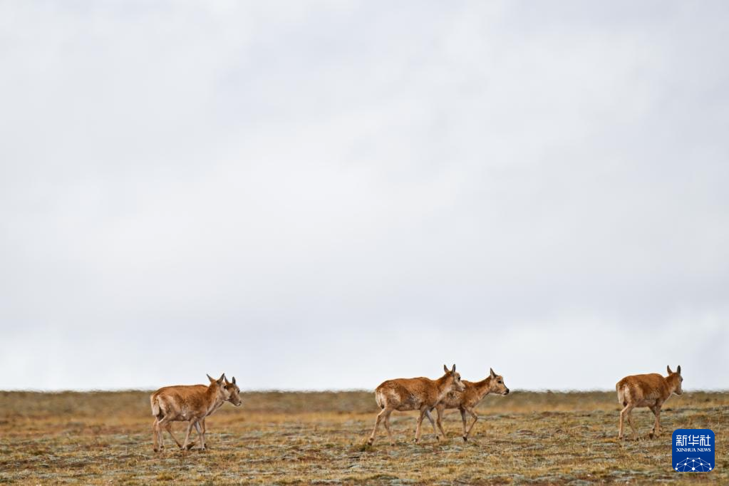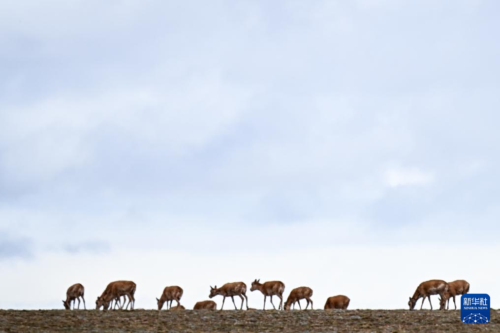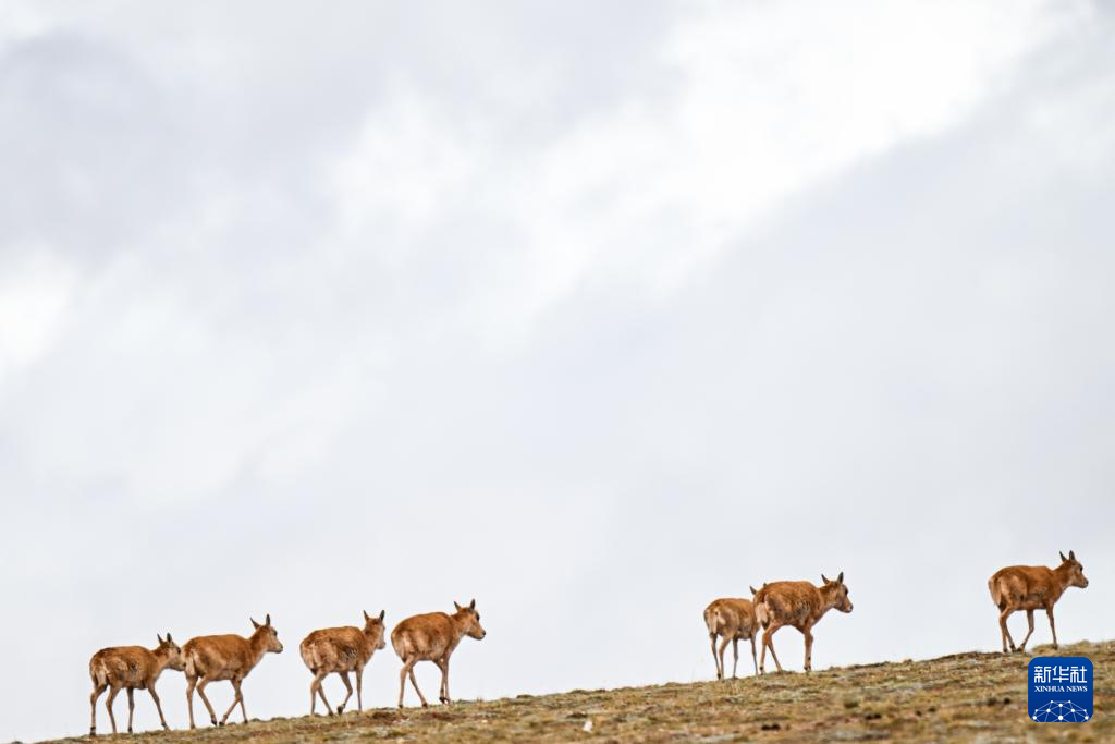 5月27日,藏羚羊在可可西里五道梁地区迁徙。新华社记者 张龙 摄