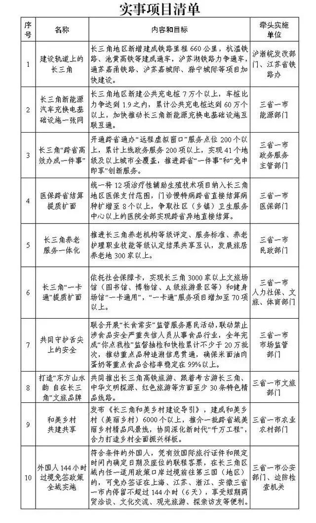 昨天(6月6日)上午,长三角一体化发展高层论坛召开,会上首次公布了长三角10项实事项目清单,内容涵盖省际交通出行、医保跨省结算提质扩面、养老服务一体化、长三角文旅品牌共建、外国人144小时过境免签政策全域实施等。