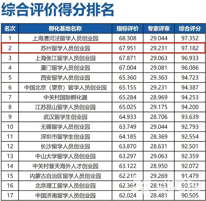 留创园,哪家强?在昨天(6月19日)举行的留学人员创业园建设30周年主题活动暨第25届全国留学人员创业园网络年会上,由中国技术创业协会留学人员创业园工作委员会与中国科学院科技战略咨询研究院共同组织编制的《2024中国留学人员创业园区孵化基地竞争力报告》正式发布。值得一提的是,苏州创业园(苏州留学人员创业园)在“孵化基地综合评价排名”中位居全国第二,较去年再上升一位,继续排名全省第一。