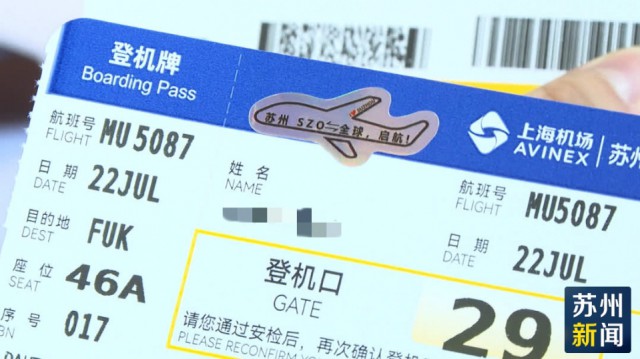 在上海机场苏州城市航站楼,旅客不仅可以完成值机、行李托运等手续,登机牌上也印有SZO三字代码。
