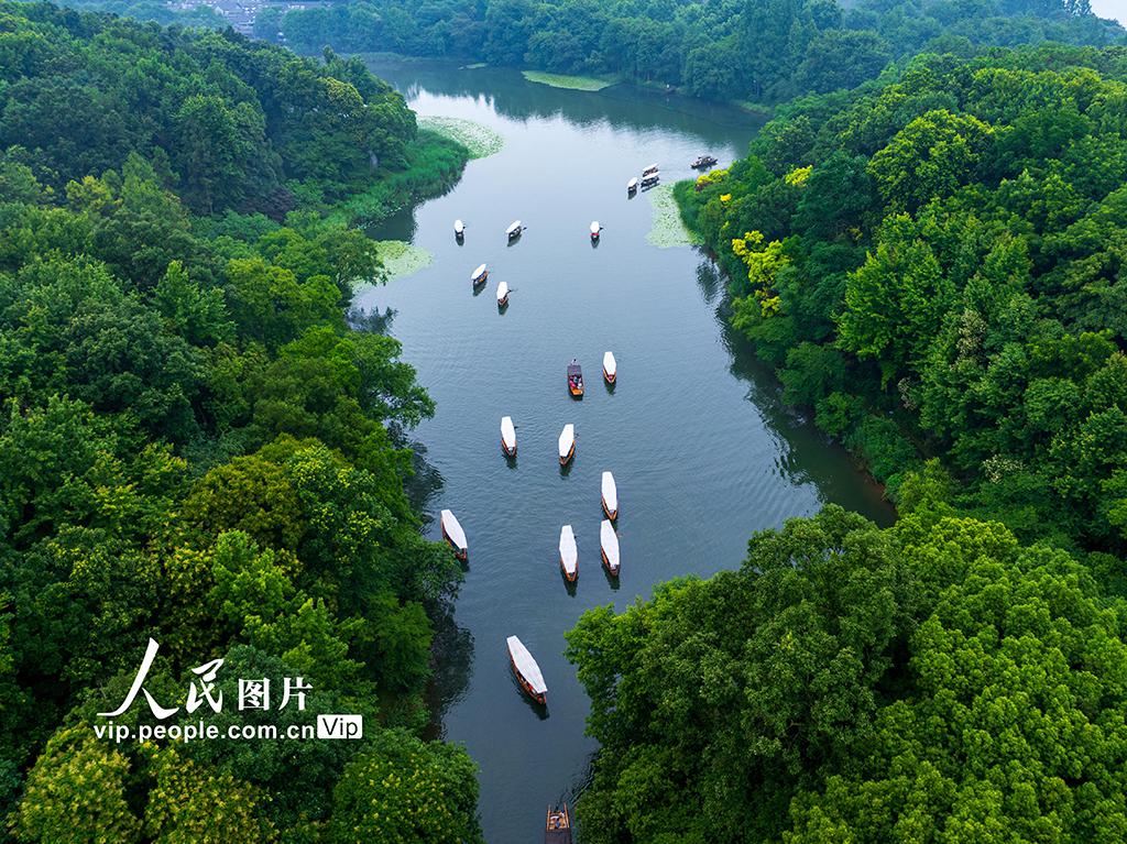 2024年6月9日,杭州西湖被蒙蒙细雨轻纱覆盖,游人雨中泛舟,船只穿梭如织,共绘一幅生动江南水乡画卷。唐方校摄(人民图片网) 2024年6月9日,杭州西湖被蒙蒙细雨轻纱覆盖,游人雨中泛舟,船只穿梭如织,共绘一幅生动江南水乡画卷。唐方校摄(人民图片网) 2...