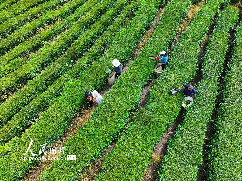 2024年6月13日,湖北省恩施土家族苗族自治州巴东县溪丘湾乡的茶农正忙着采夏茶。 近年来,当地依托万亩生态茶园,大力发展茶产业,丰富茶园配套设施,持续举办茶文化艺术节,推动茶产业提质增效,促进茶农增收,壮大村集体经济收入,助推乡村振兴。焦国斌摄...