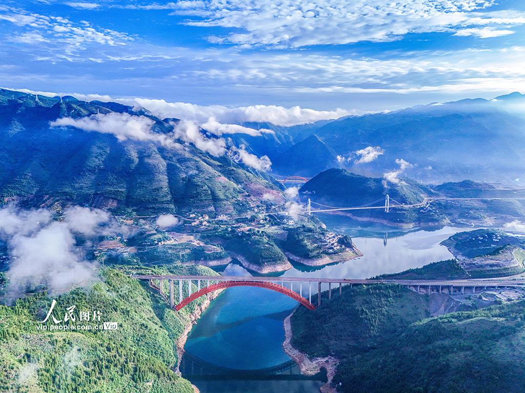 2025年6月9日,重庆市巫山县,雨后清晨的高峡平湖云雾缭绕,与山川、城市构成一幅生态山水画卷,美不胜收。谭昌藩摄(人民图片网)...
