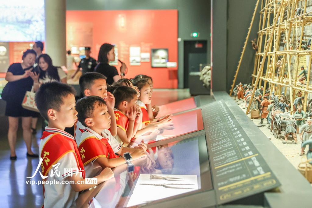 2025年7月6日,小朋友在南京城墙博物馆参观。暑假期间,许多家长带着孩子来到南京城墙博物馆参观游览,感受历史文化魅力,丰富暑期生活。史俊摄(人民图片网)...