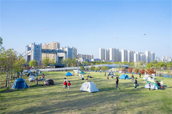 活力体育公园的东侧大草坪,是露营的绝佳场所。许多居民搭起帐篷,铺开野餐垫,在暖阳清风中尽情享受美景美食。平坦的草坪和种类丰富的健身器材,更是孩子们释放活力的乐园,或纵情奔跑,或放飞风筝,欢声笑语在公园的每个角落回荡。
