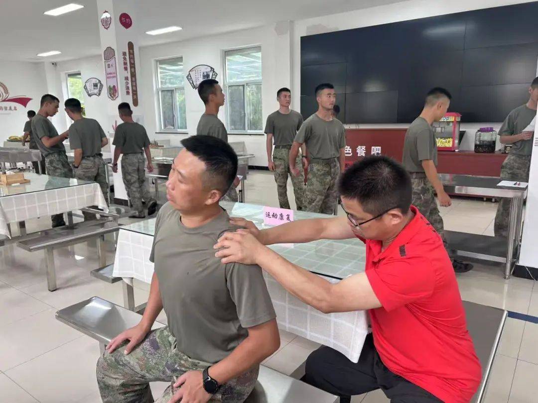 医疗健康服务区内,苏州理想眼科医院的医生们为官兵进行视力检查并建立健康档案;骨科诊疗区前,医生细致地为官兵检查训练中常见的膝关节、腰椎等部位的劳损情况,结合军事训练特点给出康复建议;皮肤科医生则针对野外驻训时易出现的晒伤、虫咬性皮炎等问题,提供用药指导和防护方案;运动康复区里,康复师根据官兵的训练损伤情况,设计个性化的恢复训练计划,帮助他们更快恢复体能。