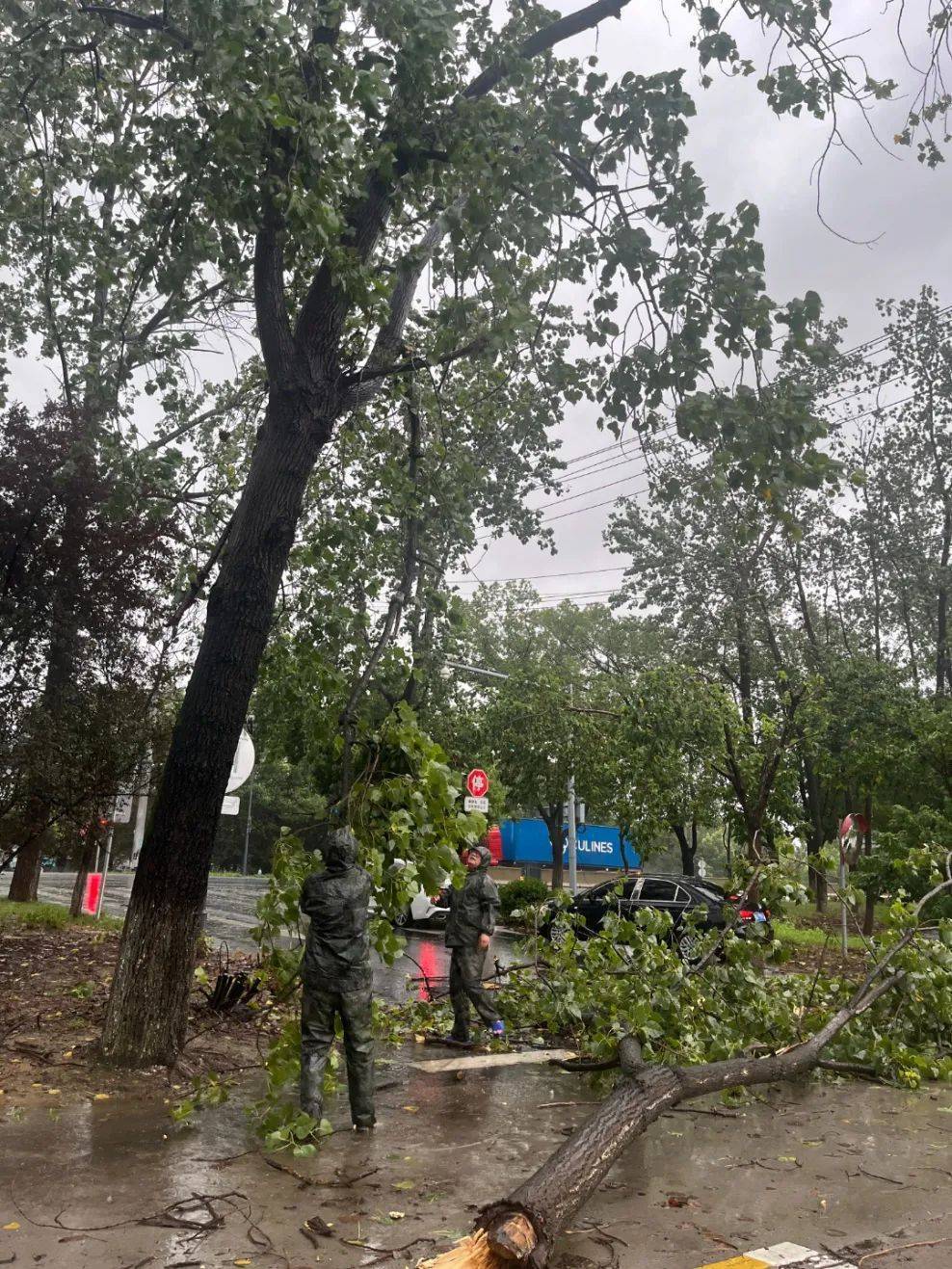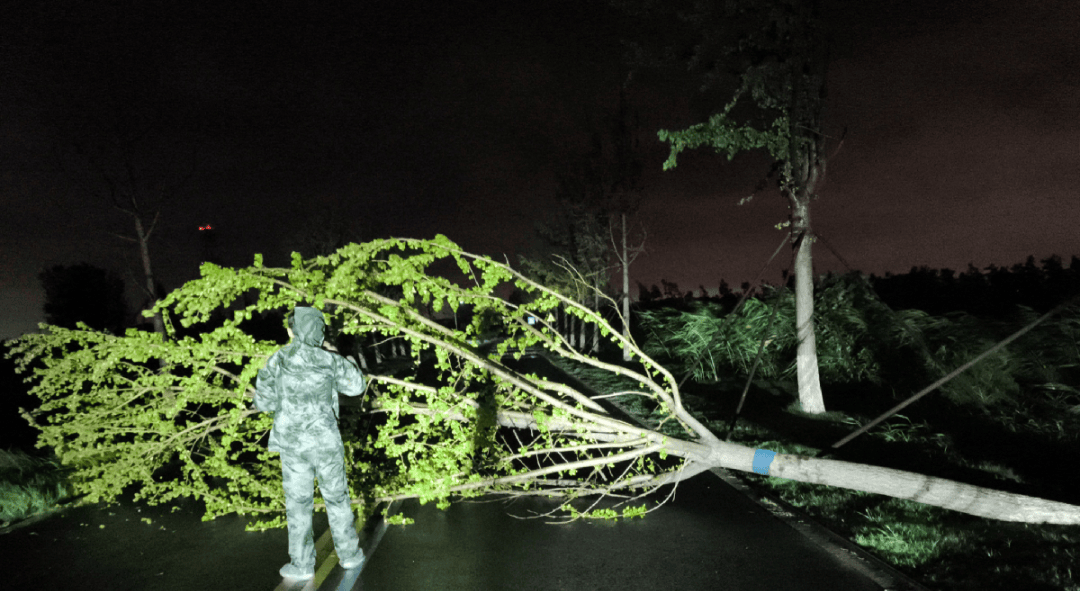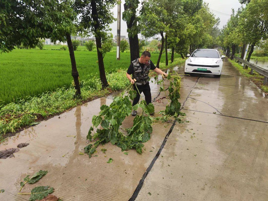 太仓市退役军人志愿者抗台期间清理路面杂物保障村民出行安全