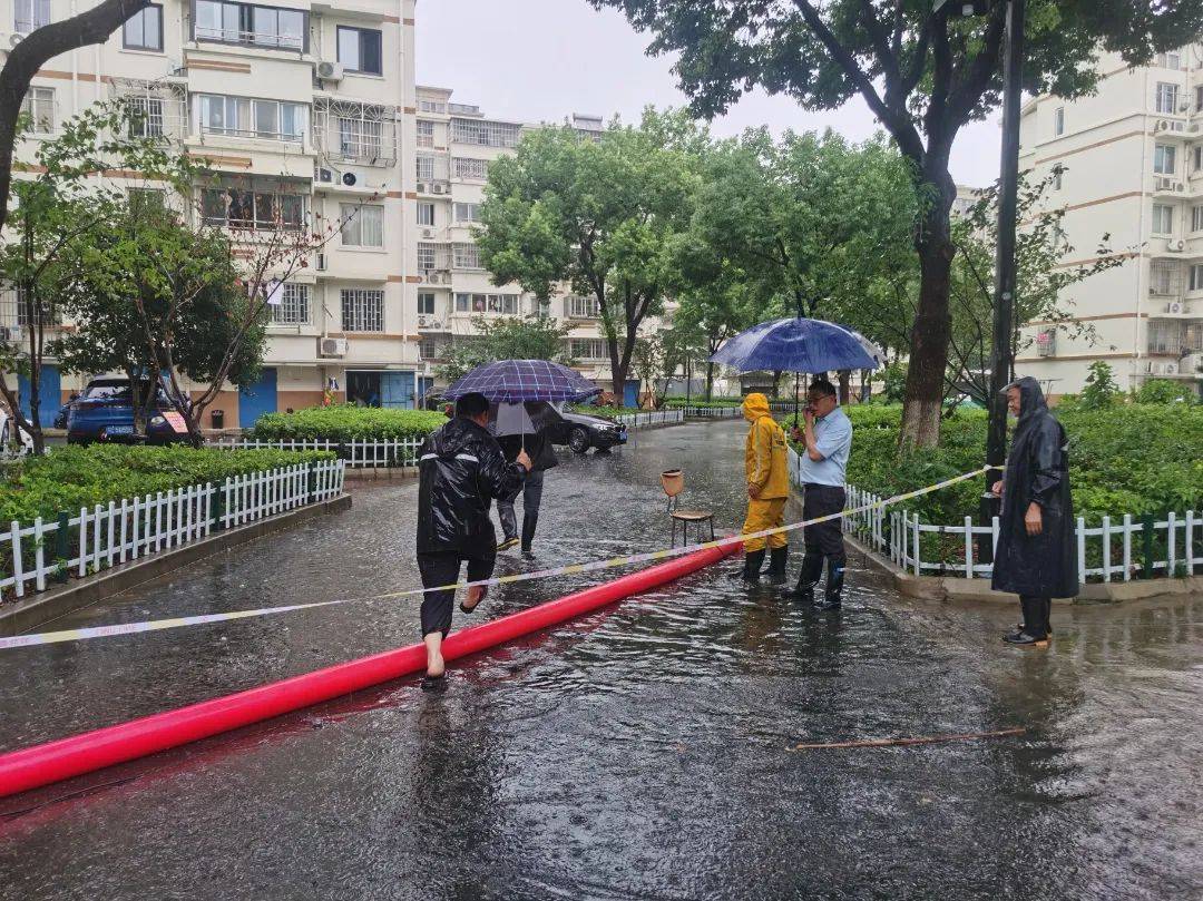 高新区华通三区组织退役军人志愿者疏通小区内积水