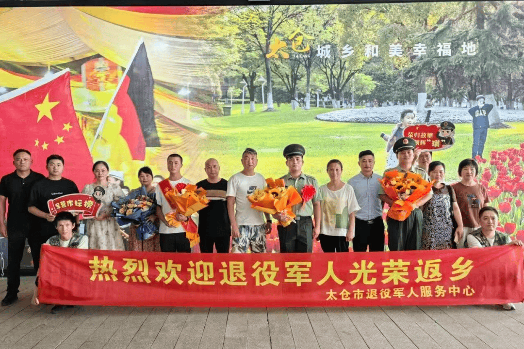 9月1日起,太仓市50余名退役军人陆续返乡。 在太仓站及太仓南站的欢迎现场,“热烈欢迎退役士兵光荣返乡”的红色横幅格外醒目。工作人员与志愿者们热情相迎,为每一位返乡的退役士兵披上绶带、送上鲜花,并致以诚挚的问候和崇高的敬意。让退役军人真切感受到回家的温暖与便利,实现从部队到地方的无缝衔接。