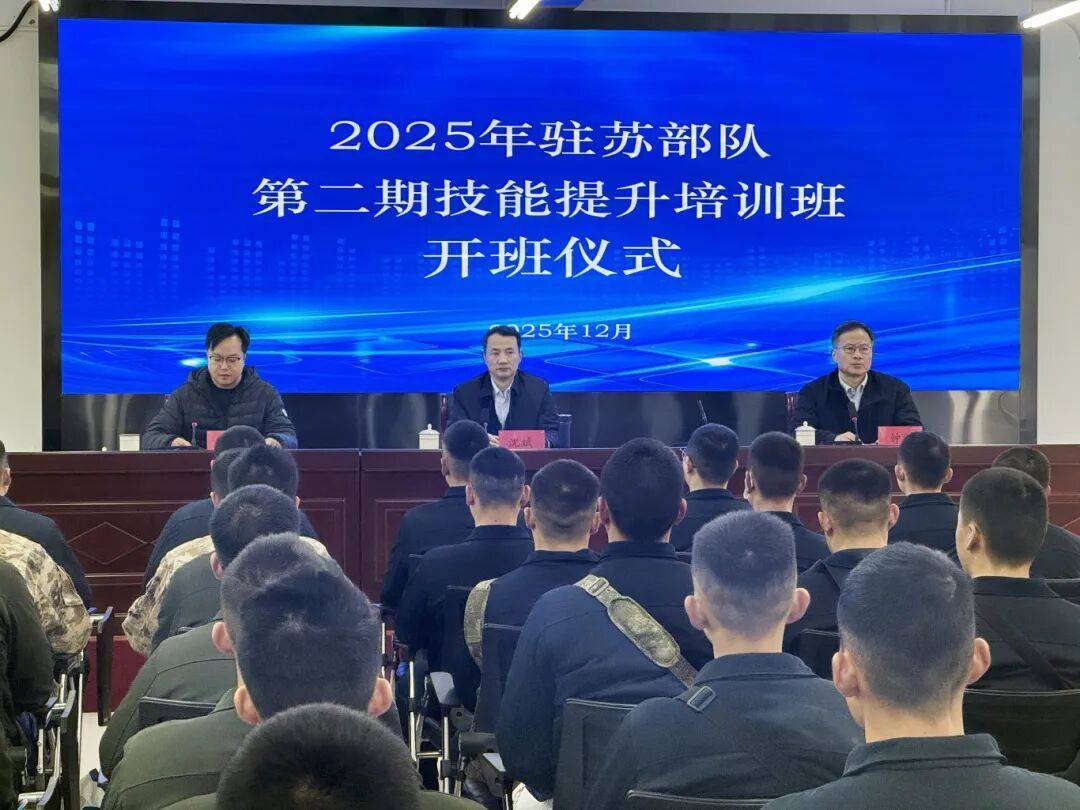 为持续深化新时代双拥工作,依托首期培训的良好成效,结合部队实际需求,12月22日,苏州市第二期现役军人通用技能培训班正式开班,驻苏部队66名官兵参训。苏州市退役军人事务局副局长沈斌、承训院校负责人、部队代表及全体学员出席开班仪式。
