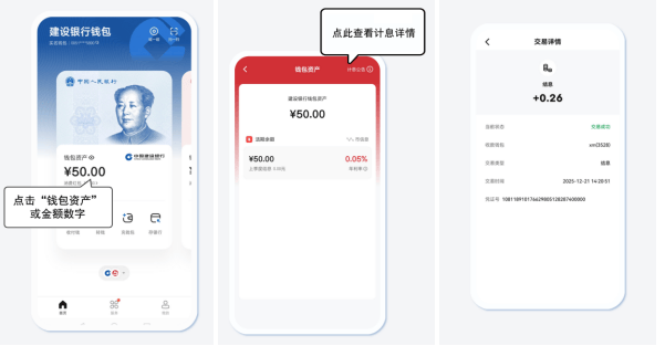 自2026年1月1日起,中国建设银行将为您开立在我行的数字人民币实名钱包余额按照本行活期存款挂牌利率计付利息,计结息规则与活期存款一致。